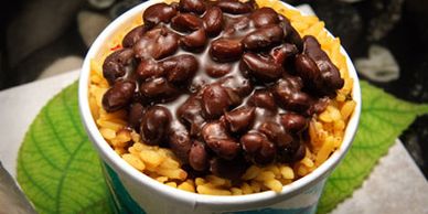 (Vegetarian) Our perfectly seasoned Black Beans served over warm Yellow Rice served with Cuban Toast and Chopped Onion on the side.