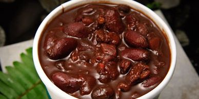Tender Black Beans seasoned with Red Bell Pepper, Onion, and Garlic, then slowly cooked to perfection. Served with Cuban Toast and Chopped Onions on the side.