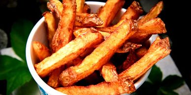 Hand Cut Potatoes & Fried Twice. Simply divine with a side of our Spicy Dipping Sauce.