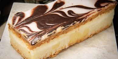 Light graham cracker crust on the bottom and beneath the icing, a rich whipped custard and whipped cream center & sugar icing make this a Floridian Specialty.