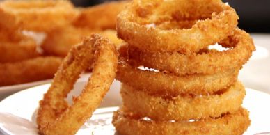 Our Homemade Onion Rings are light and crispy and exploding with flavor! 6 per order
